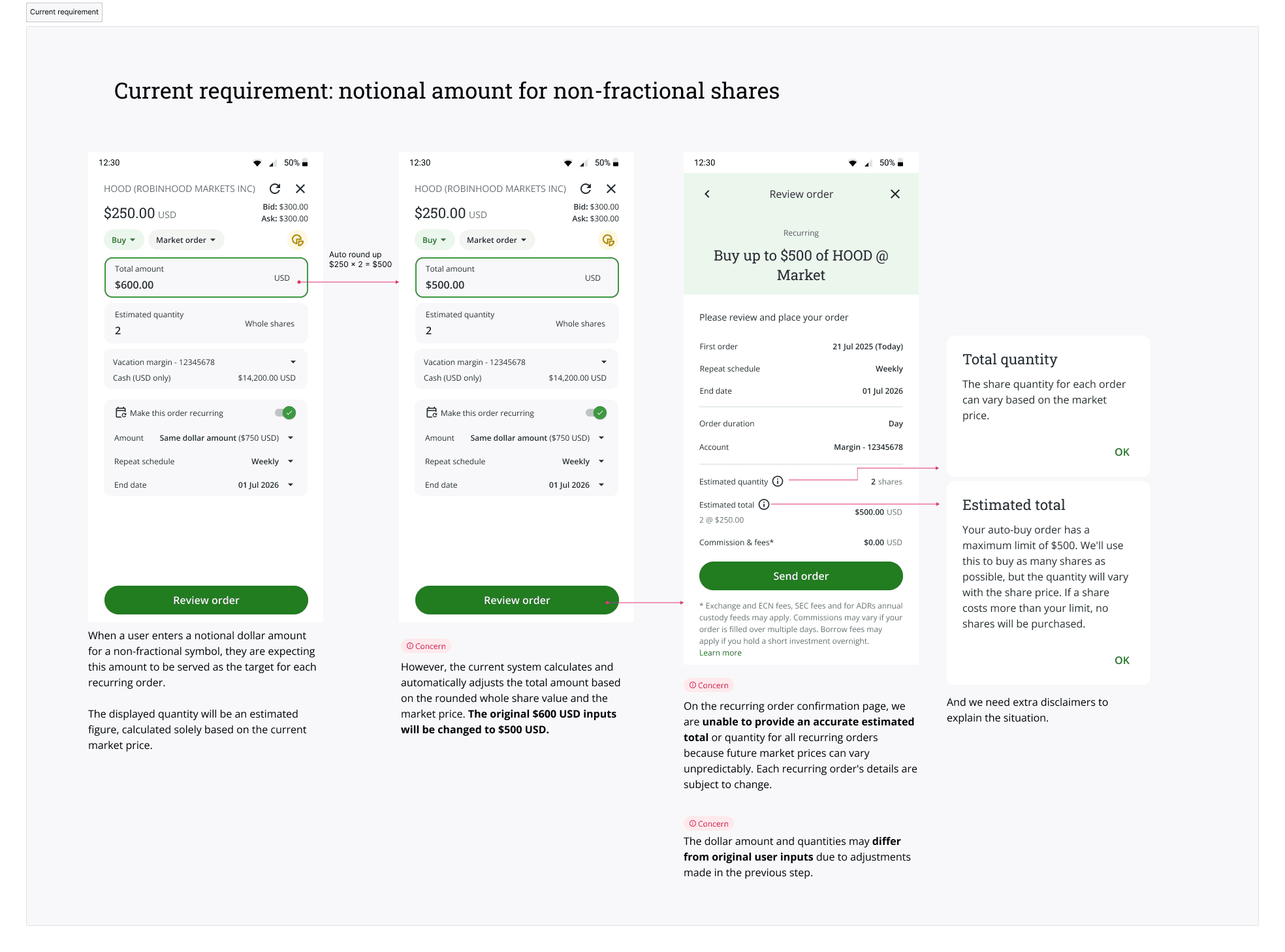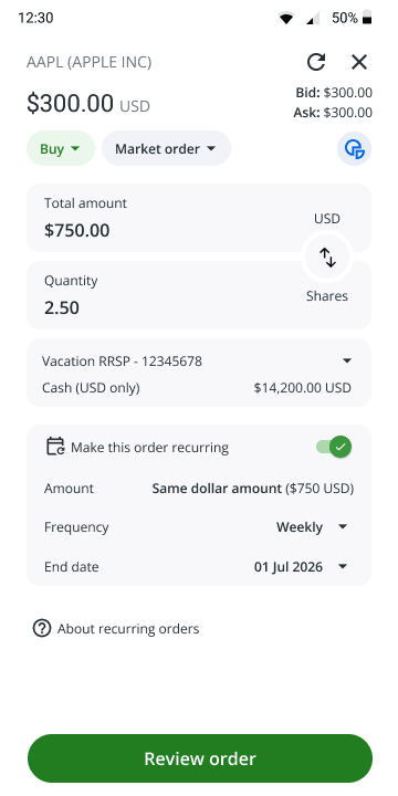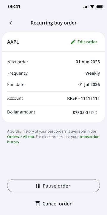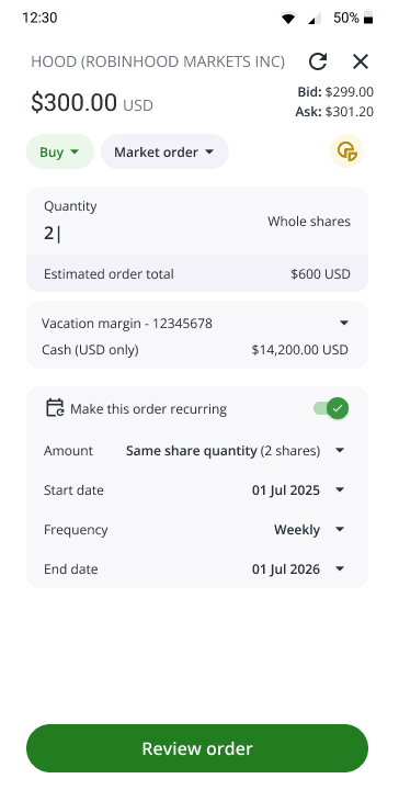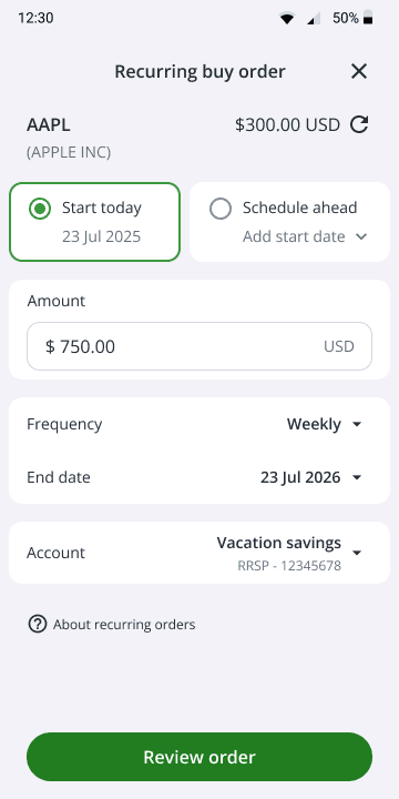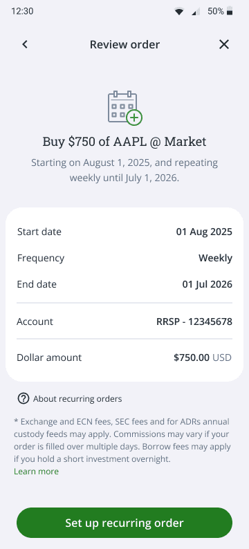 Originally, I integrated the recurring feature directly into the high-traffic Order Entry Panel. By adding a simple toggle, I aimed to capture users during their existing day-to-day workflow, treating automation as a seamless "add-on" to a manual trade.